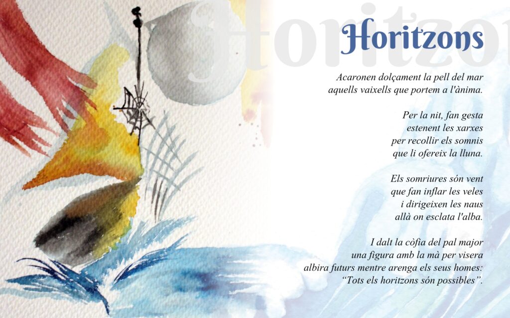 Josep Orihuel hi recita uns versos plens de simbolisme marí i de missatge universal: tots els horitzons són possibles. Un text que combina somnis, desitjos i esperança, i que convida a mirar endavant amb optimisme.